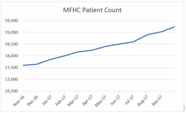 The growth in Mountain Family Health Centers patients has been amazing. We’ve grown by almost 10 percent, which you can see in the MFHC Patient Count graph in the photo gallery at the bottom of this blog post. This is great news for our community, and Mountain Family is ready for our new patients. We have approximately 170 employees, including medical, dental and behavioral health providers, available at eight sites.