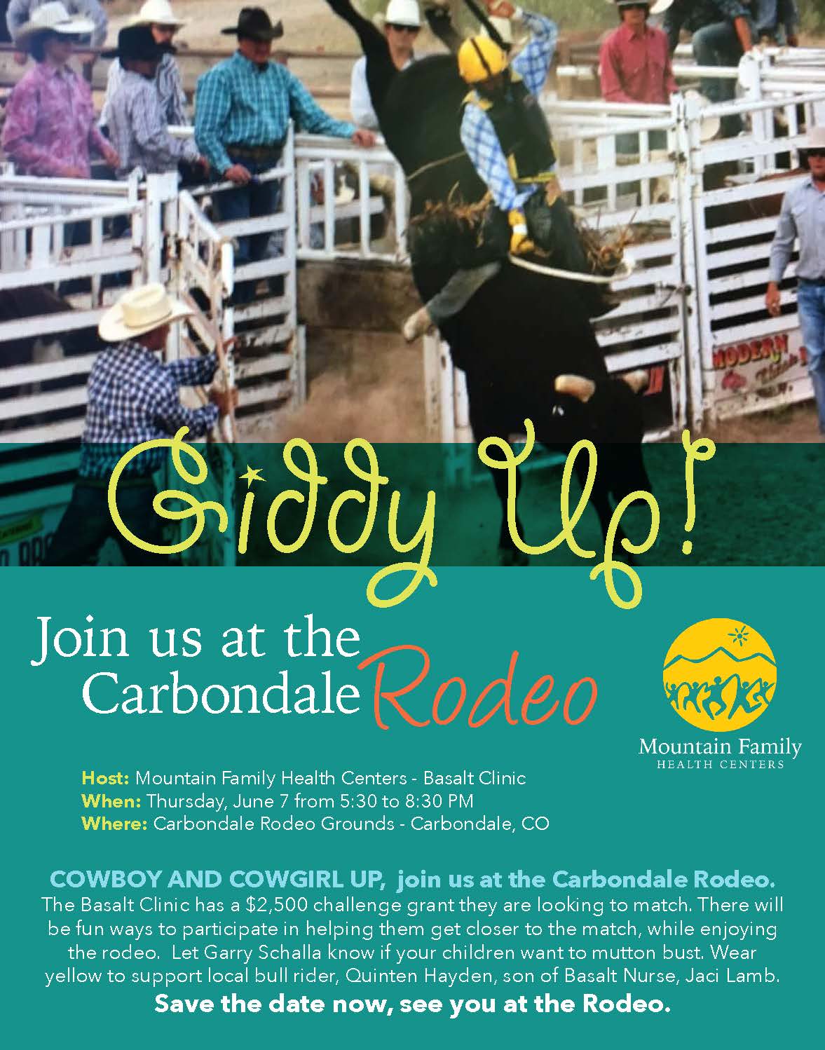 Thursday, June 7th: Carbondale Wild West Rodeo, 5:30pm – 8:30pm, Carbondale Rodeo Grounds.