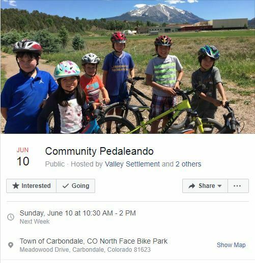 Sunday, June 10th: Community Pedaleando, 10:30am – 2pm, North Face Bike Park in Carbondale.